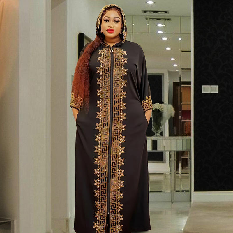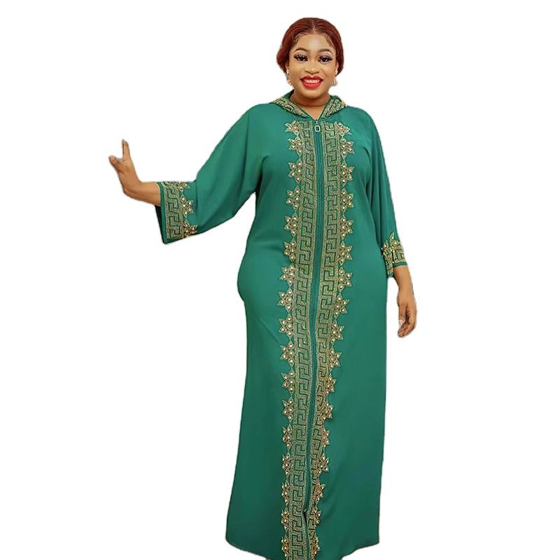 CCY fábrica de lujo diseñador musulmán con capucha Abaya Rhinestone Dubai mujeres africanas vestido islámico Abaya con sombrero