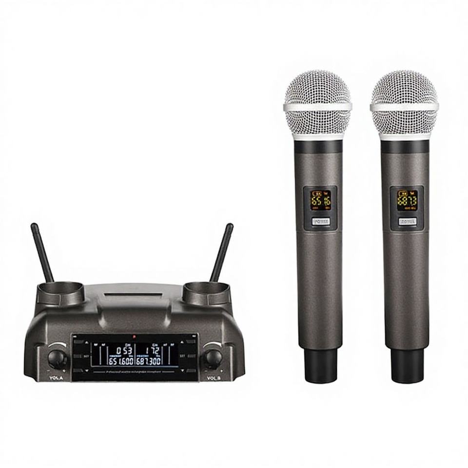 Micrófono Inalámbrico Recargable con Batería de Litio Dinámica CD-02, 2 Canales, Micrófono de Mano Metálico para Teléfonos Inteligentes, Espectáculos al Aire Libre