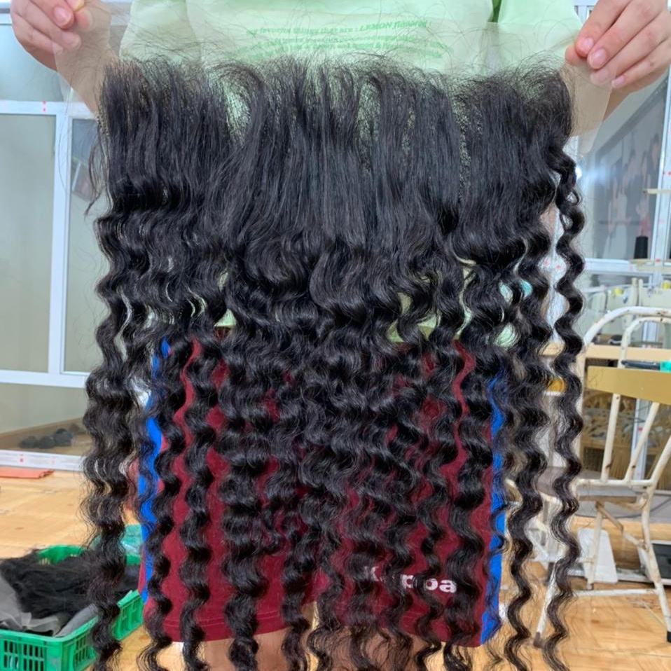 CDYHAIRVN Venta al por Mayor Directa de Fábrica, Cabello Humano Vietnamita Virgen Frontal 13x4 13x6 HD Transparente para Encaje, No Remy, Rizado Birmano