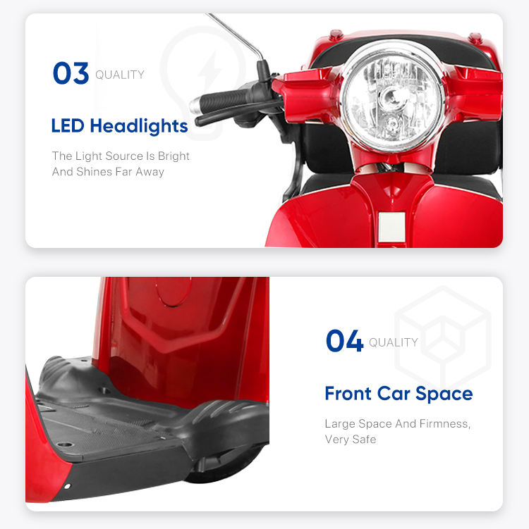 Rango extendido y conveniencia: este scooter eléctrico de movilidad de 4 ruedas ofrece un rango de 40-60Km por carga, lo que lo hace ideal para el uso diario, Y se puede cargar completamente dentro de 6-8 horas, proporcionando a los usuarios una experiencia conveniente y sin problemas.
