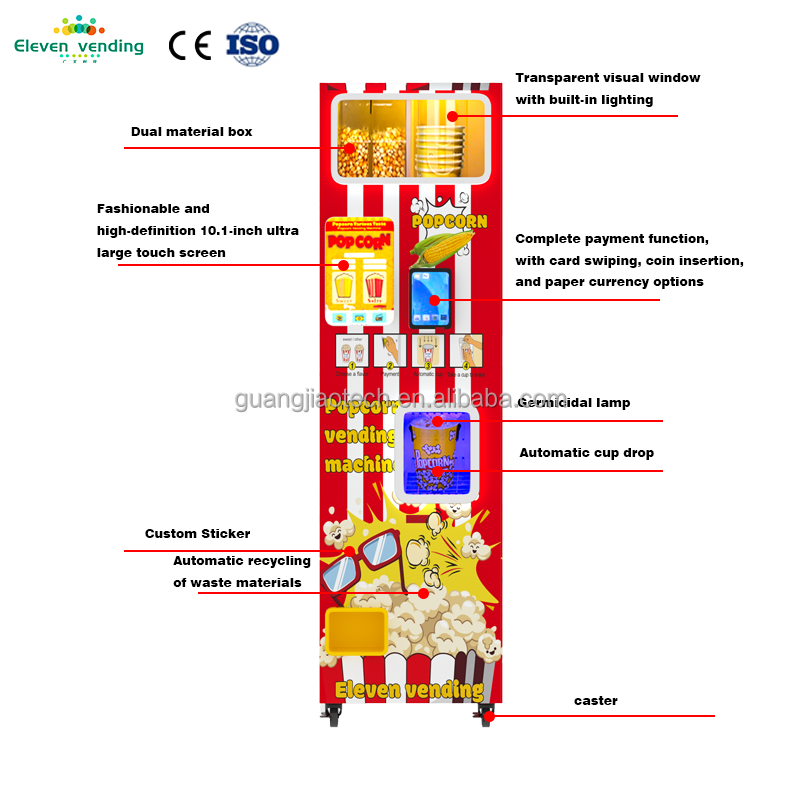 Máquina Expendedora de Palomitas de Maíz Automática con Certificación CE, Máquina Expendedora Comercial de Palomitas de Maíz con Sistema Web para Clientes, para Operación en Cadenas de Tiendas