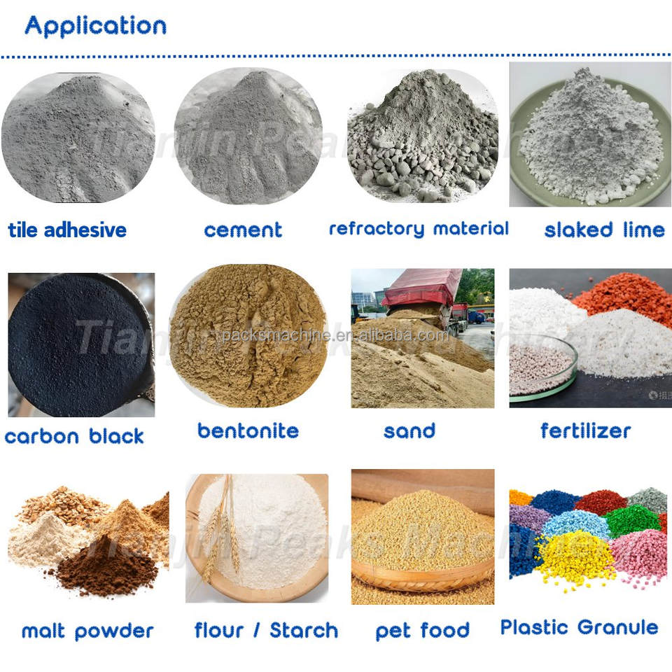 Ámbito de aplicación:cemento, mortero, adhesivo para azulejos, almidón, harina, alimento para animales, químico