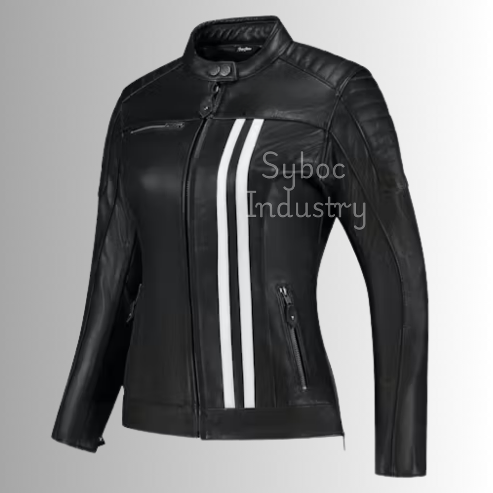 Chaqueta de moto de cuero rosa para mujer, chaqueta de moto de cuero genuino estilo carreras perforada para motociclistas