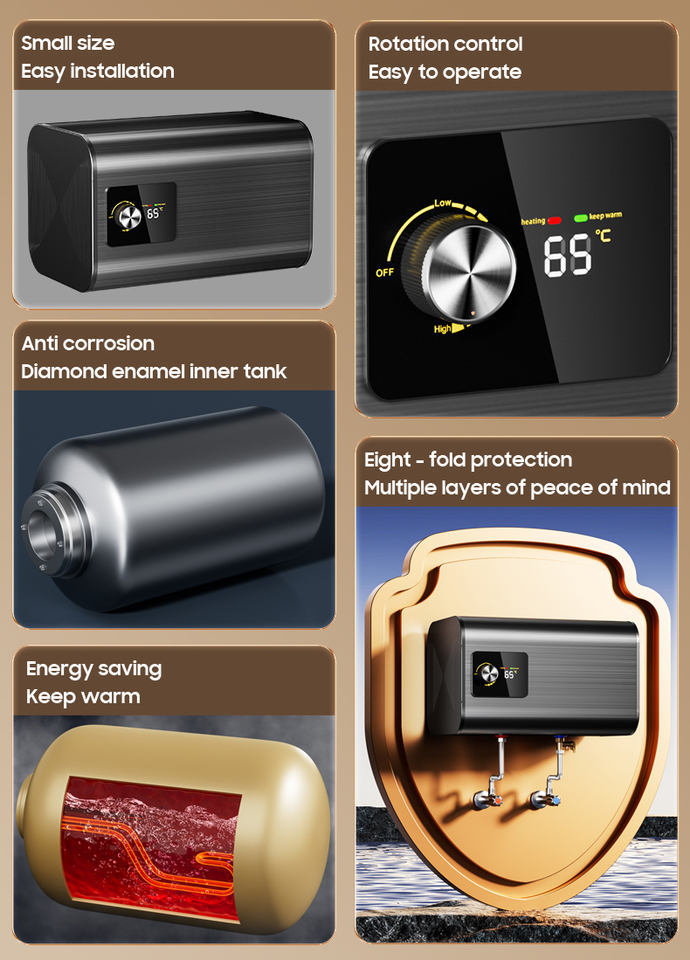 Calentador de Agua Eléctrico de Cocina de 8L-15L con Certificación CE, Resistente al Agua IPX4, de Plástico, Calentamiento Rápido, para Uso Doméstico
