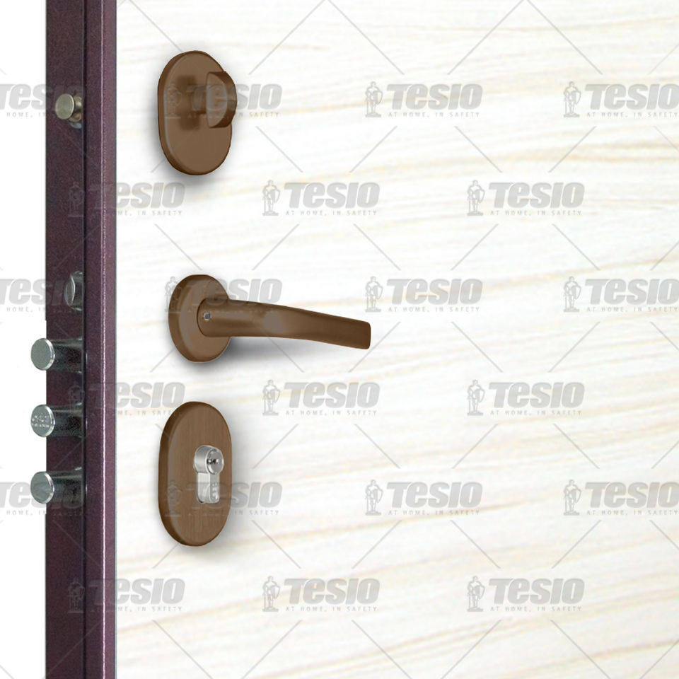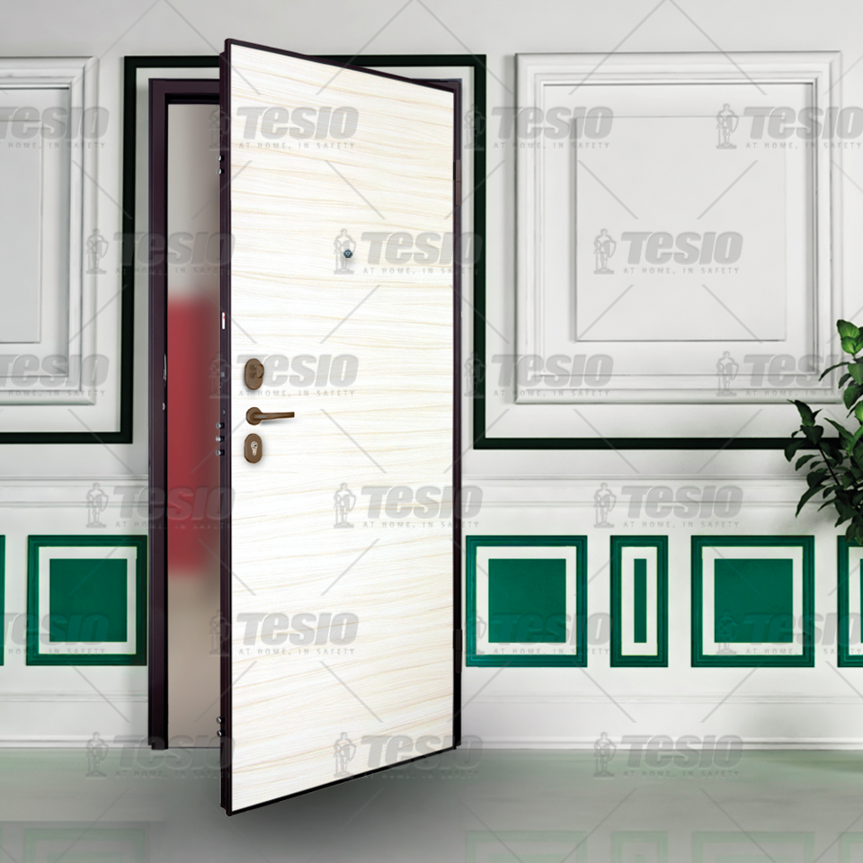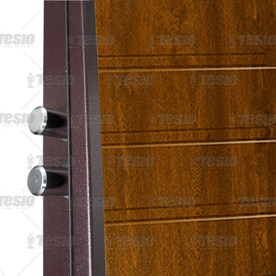 Panel Externo:Modelo TEN005 de PVC pantografiado, acabado en madera Canaletto.