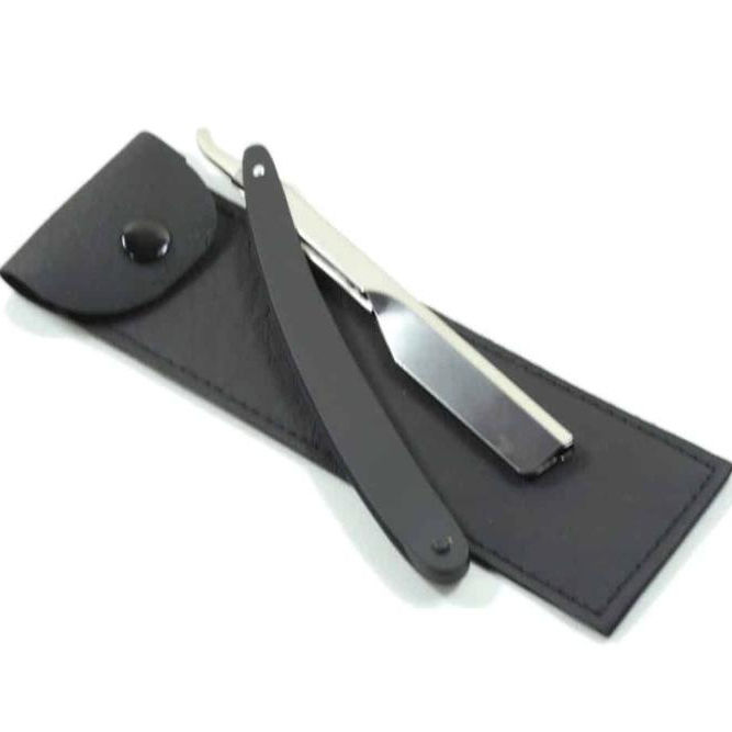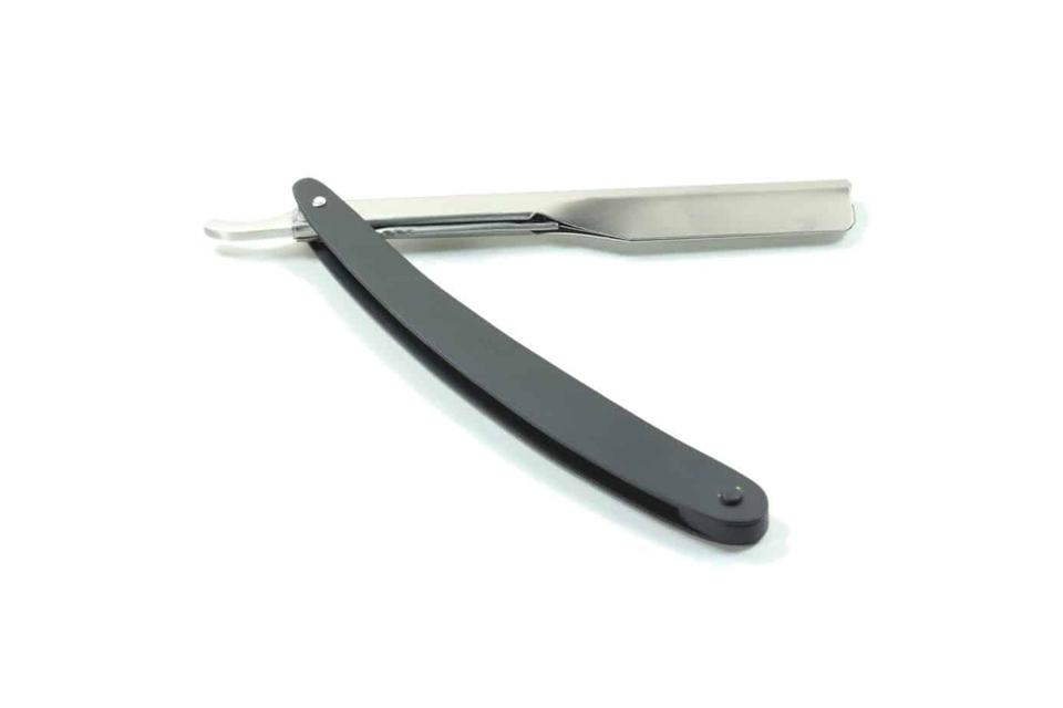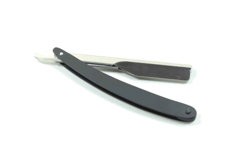 Maquinilla de afeitar de garganta de corte recto con mango negro reutilizable certificado CE, cuchillas de un solo filo, instrumentos de cuidado de belleza para cuchilla