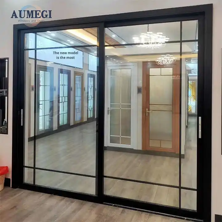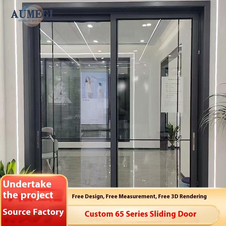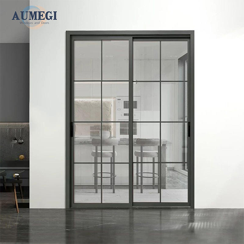 Puertas de partición corredizas de tres paneles de dos paneles con certificación CE, sala de estar Interior, vidrio de aleación de aluminio extremadamente estrecho, resistente al agua