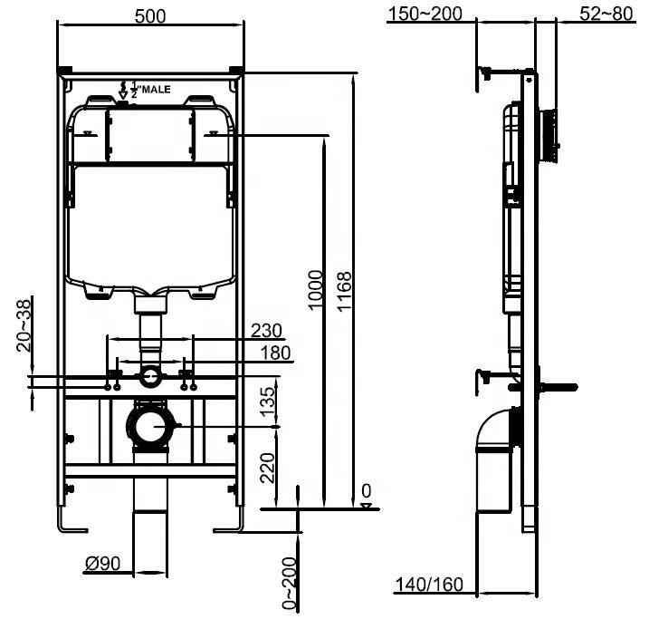 Cisterna Empotrada de Diseño Delgado Estilo Europeo CE, Sistema de Marco Anticorrosión, Cisterna en la Pared
