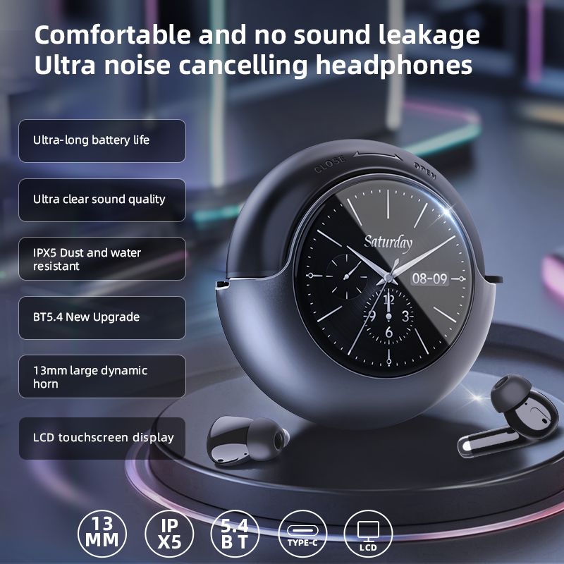 Audífonos Inalámbricos TWS con Bluetooth V5.4, Pantalla Táctil LED Inteligente T7, Reducción de Ruido ANC y ENC, Resistentes al Agua IPX5, Certificación CE, FCC y RoHS