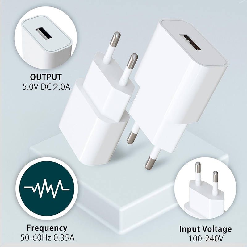 Cargador de Teléfono de Carga Rápida a Prueba de Fuego con Certificación CE, Bloque de Carga de 10 W, 5 Voltios, 2 Amperios, Enchufe de Cargador USB Tipo A, Adaptador de Corriente USB de 5 V y 2 A para Europa