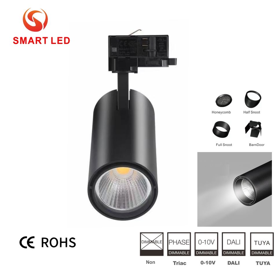 Luz de Riel LED COB de Aluminio con Certificación CE Rohs, 2/6 Hilos, RA80/Ra90/Ra97 CRI 95+, Regulable, 10-40W, Iluminación Puntual para Hoteles Modernos