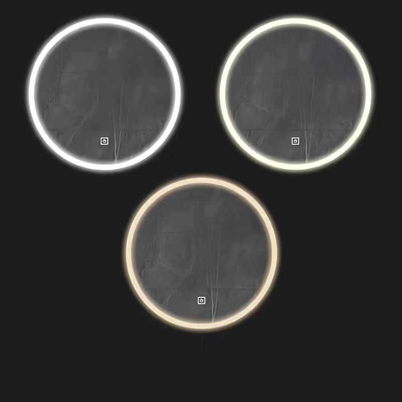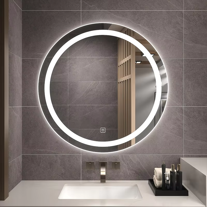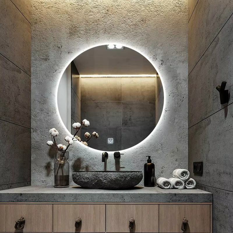 CF sin marco de lujo redondo iluminado inteligente de montaje en pared baño Interruptor táctil pantalla espejo de baño con luz Led