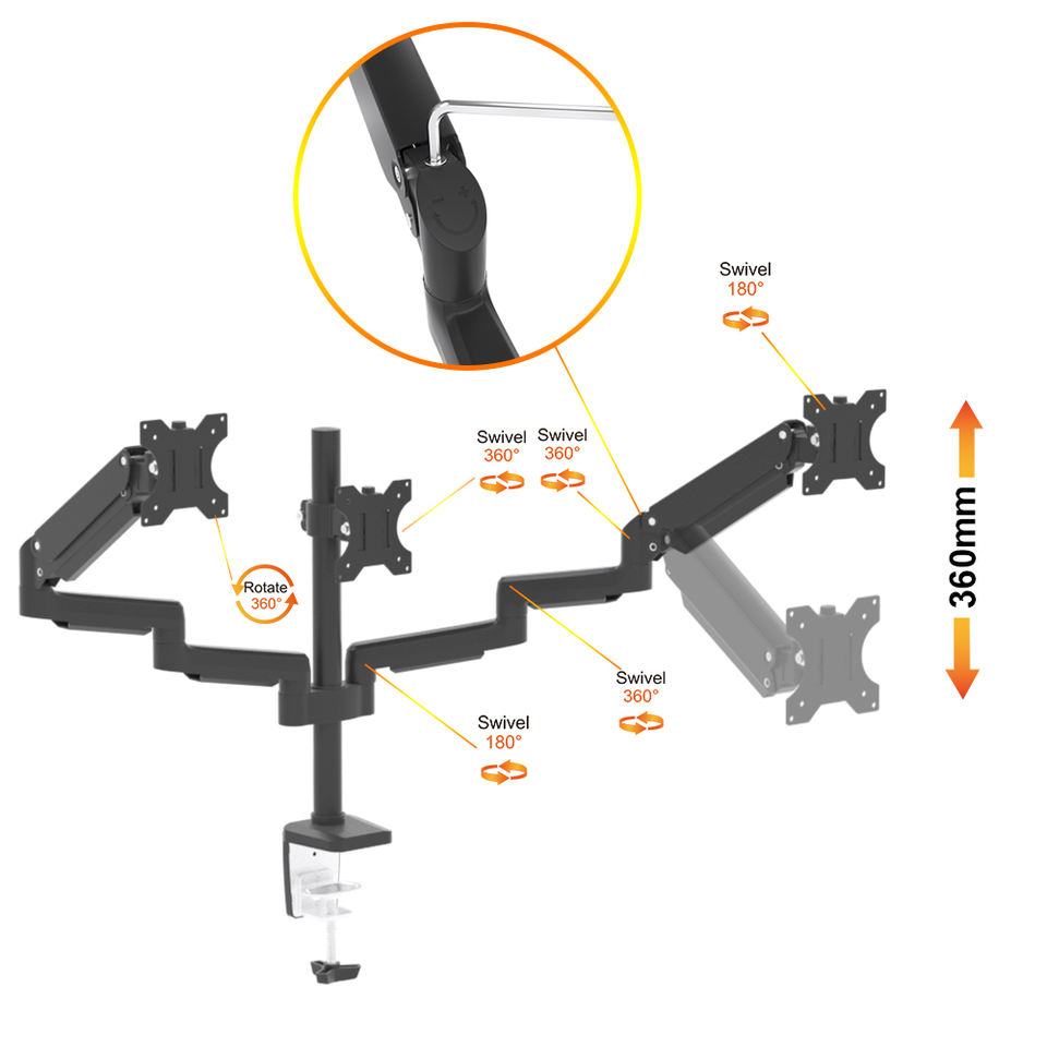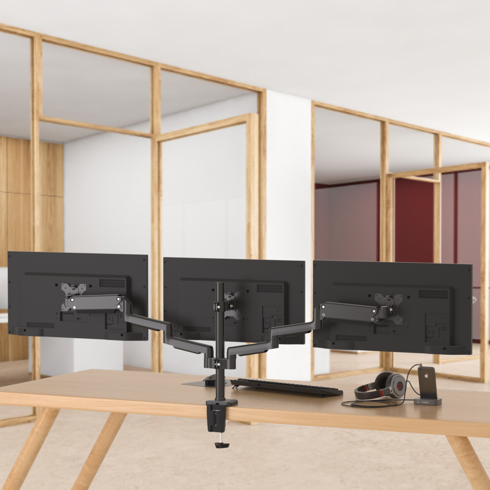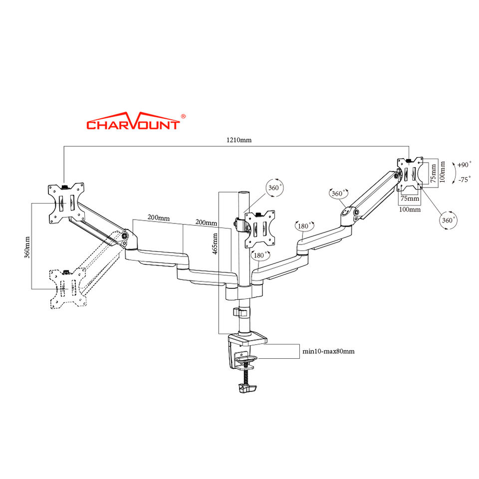 Soporte de mesa CHARMOUNT para tres monitores, brazo ajustable en altura, soporte extensible para 3 pantallas
