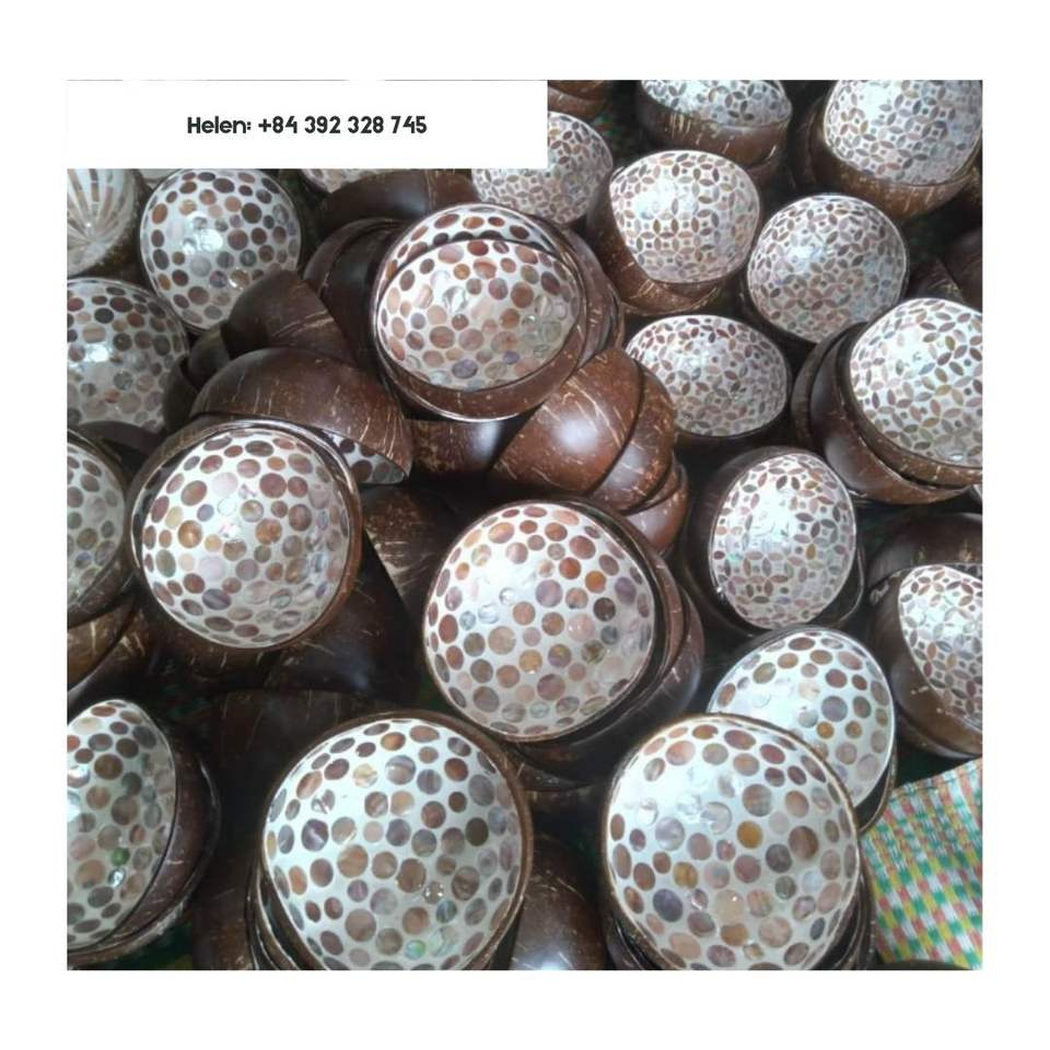 Venta al por mayor de nácar laca de cáscara de coco ensaladeras patrón atractivo cantidad personalizada hecha en Vietnam precio