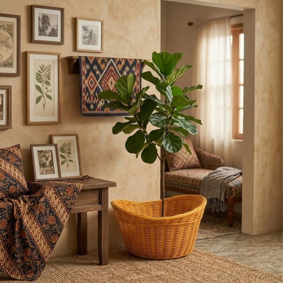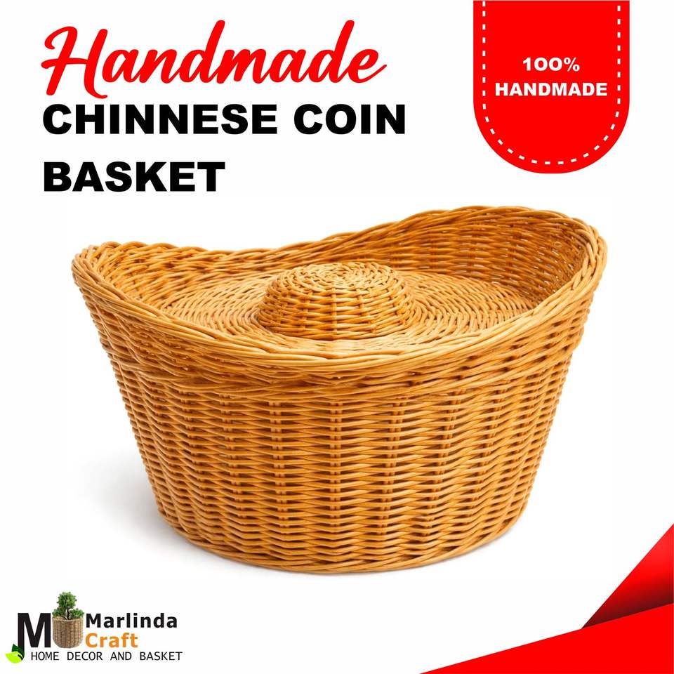 Cesta de Ratán con Monedas Chinas, Artesanía