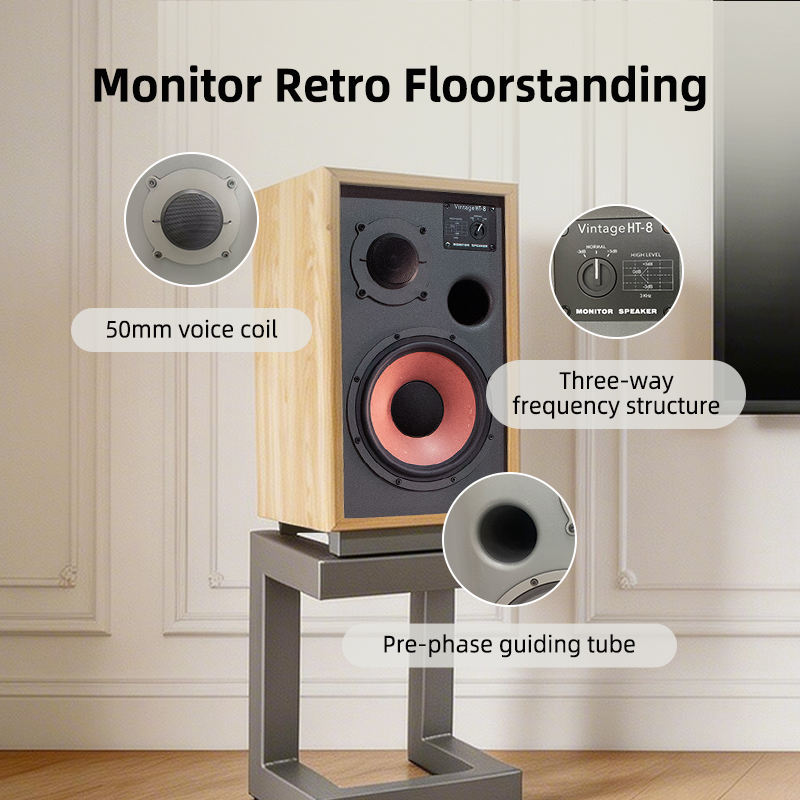 Altavoz Retro CHORDIO HT-8 de Alta Calidad de Sonido, Altavoz de Suelo Clásico de Madera HIFI para una Experiencia Musical Definitiva