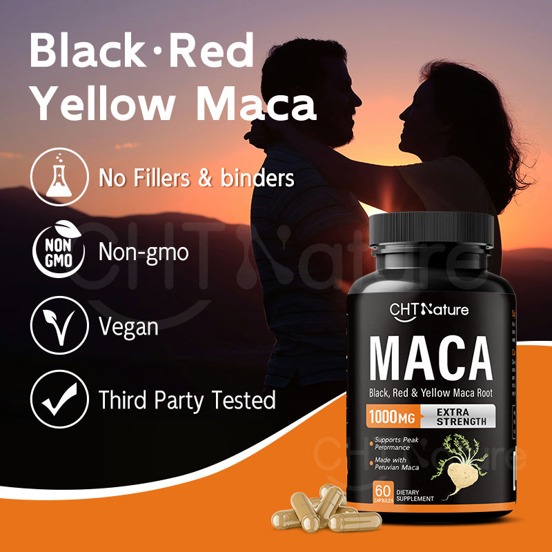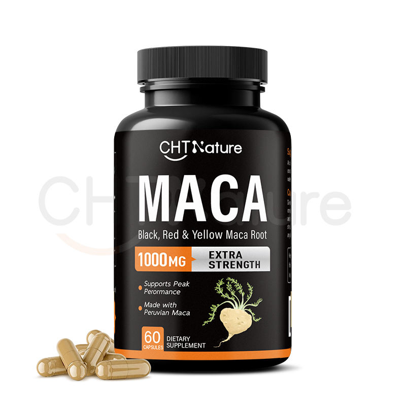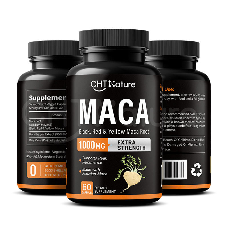 CHTNature Private Label Cápsulas de raíz de maca para hombres Power 500mg 1000mg Cápsulas de Maca negra