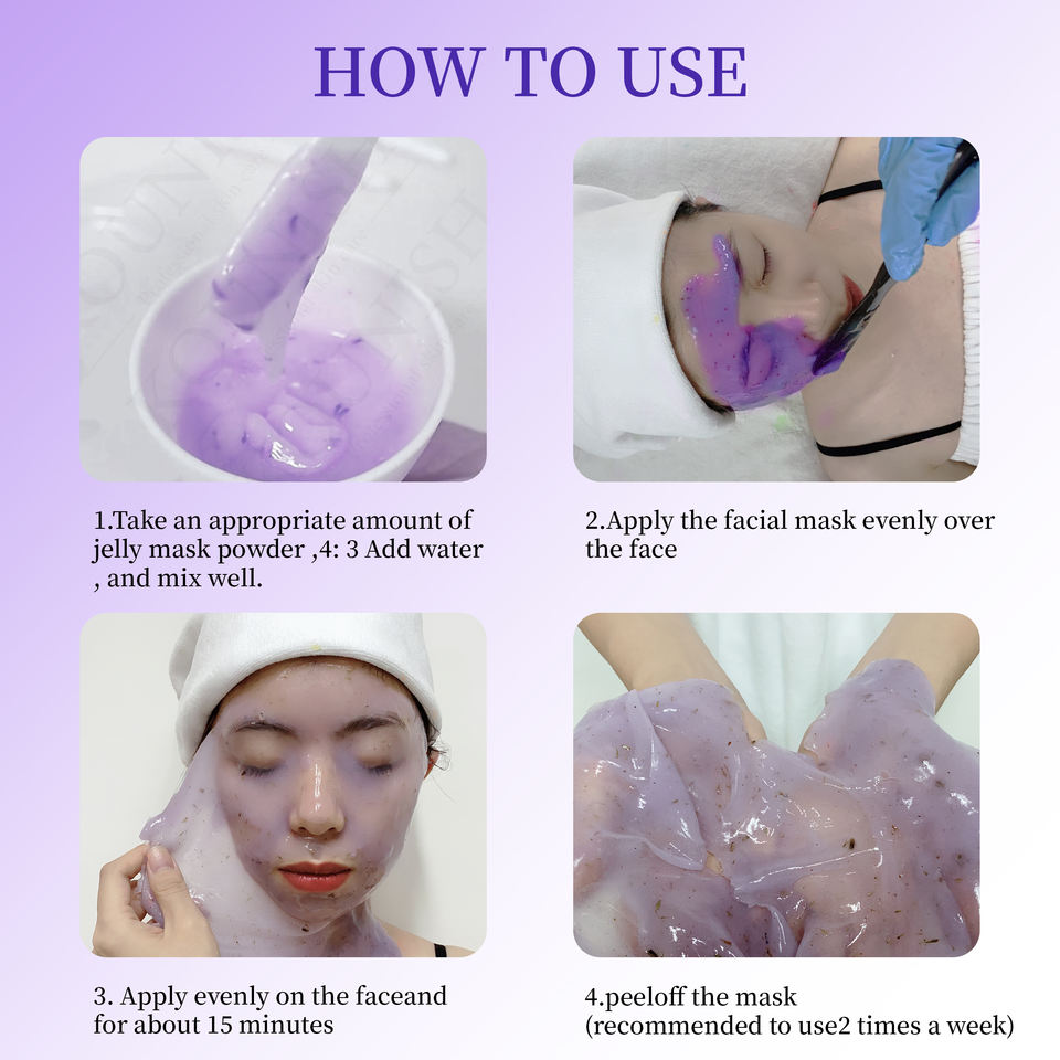 Mascarilla en Polvo de Gelatina de Lavanda CHUSN para Calmar y Suavizar la Piel, Aroma Relajante, Cuidado SPA, Venta al por Mayor para Salones, OEM, ODM, Marca Privada