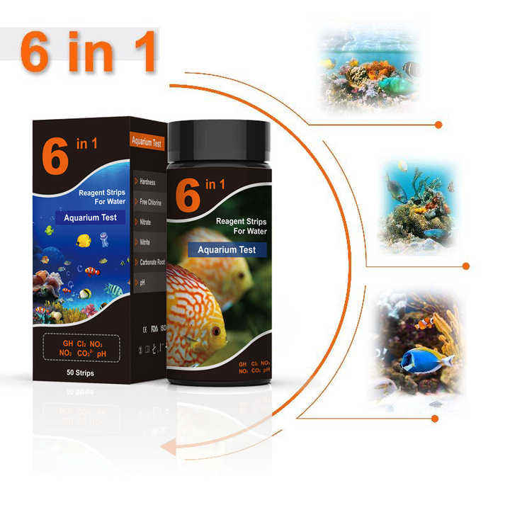Tiras Reactivas para Acuario CI2 NO2 NO3 PH KH GH, 6 en 1, Kit de Prueba de Agua para Peceras