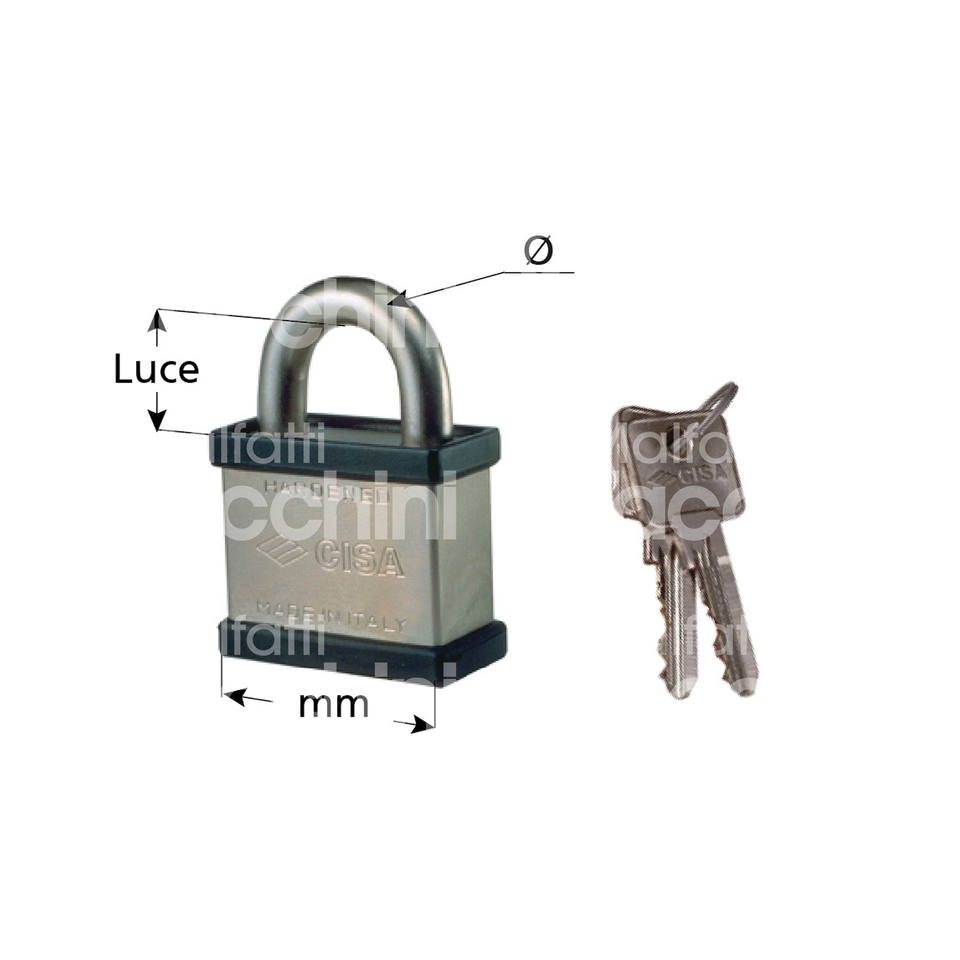 CANDADO CISA MONOBLOCK en acero carbonitrurado. Grillete en acero endurecido. 2 teclas con perfil LIM. Cilindro reutilizable.