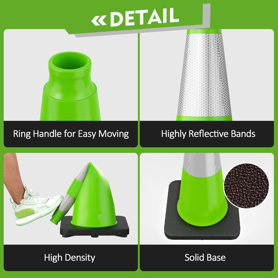 Conos de Seguridad Vial CITICITY de 28 Pulgadas con Base Negra Ponderada, Conos de PVC Verde Lima con Cuello Reflectante de Alta Visibilidad