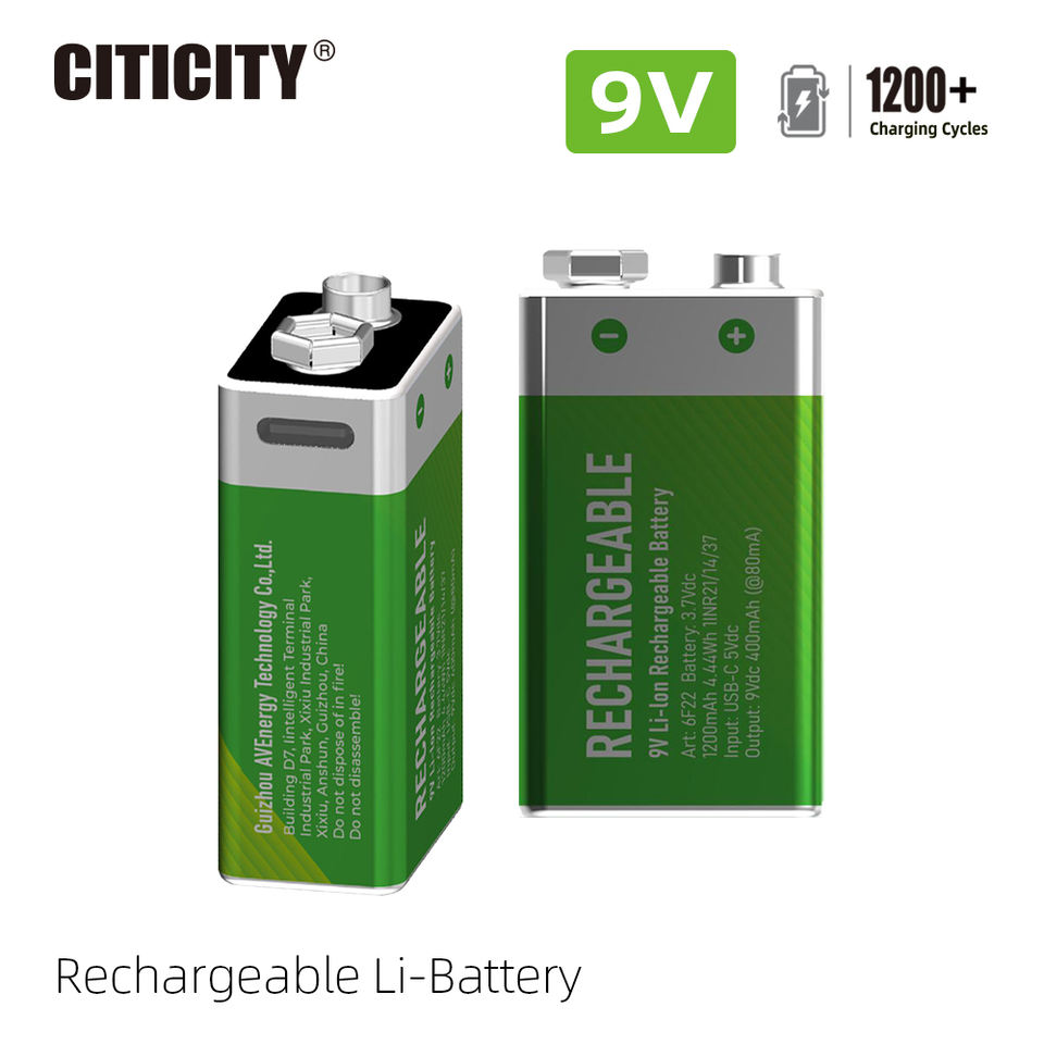 CITICITY Baterías Recargables USB de Iones de Litio de 9V - 4500mWh, Más de 1000 Ciclos de Carga, Cable USB-A y USB-C para Control Remoto y Linterna