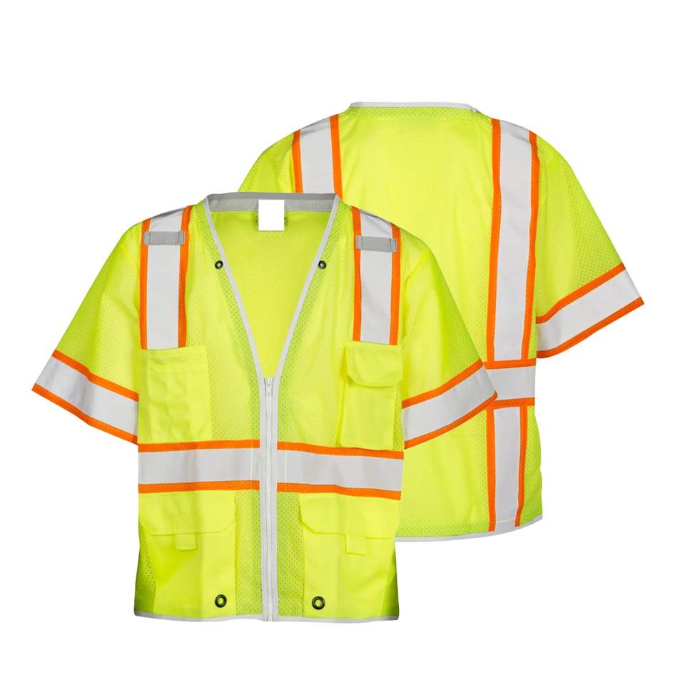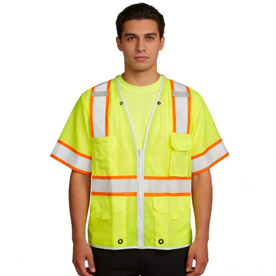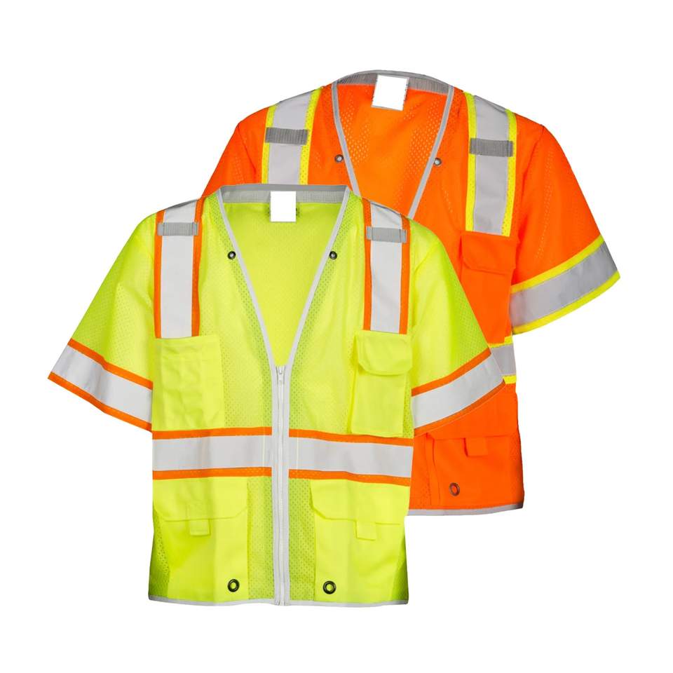 Chaleco de seguridad de malla de alta resistencia con mangas y múltiples bolsillos para topógrafo