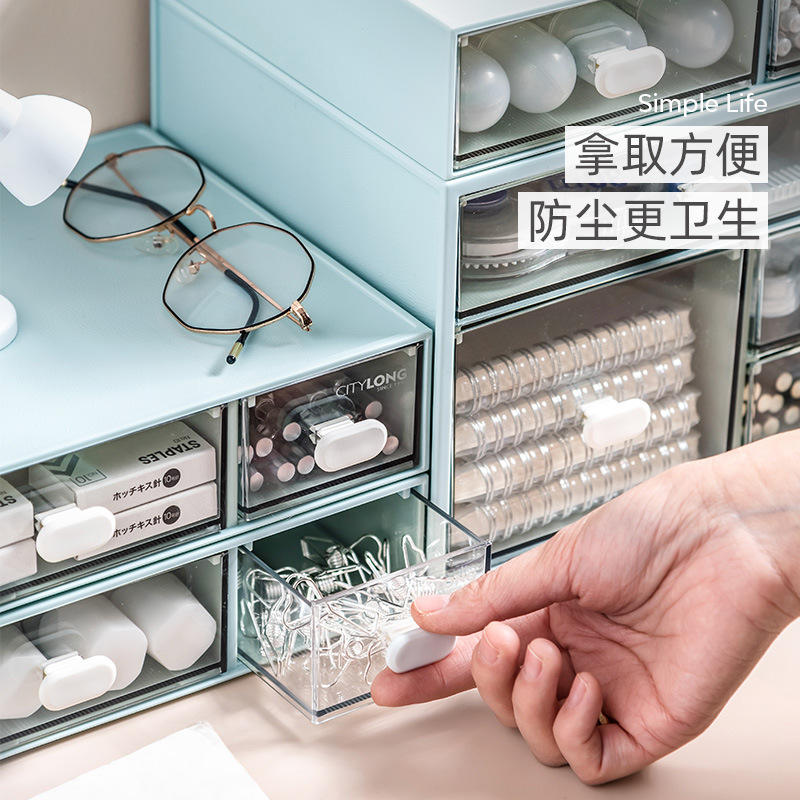 Caja de almacenamiento de escritorio CITYLONG, estilo cajonera con divisiones para papelería de oficina, organización a prueba de polvo para cosméticos