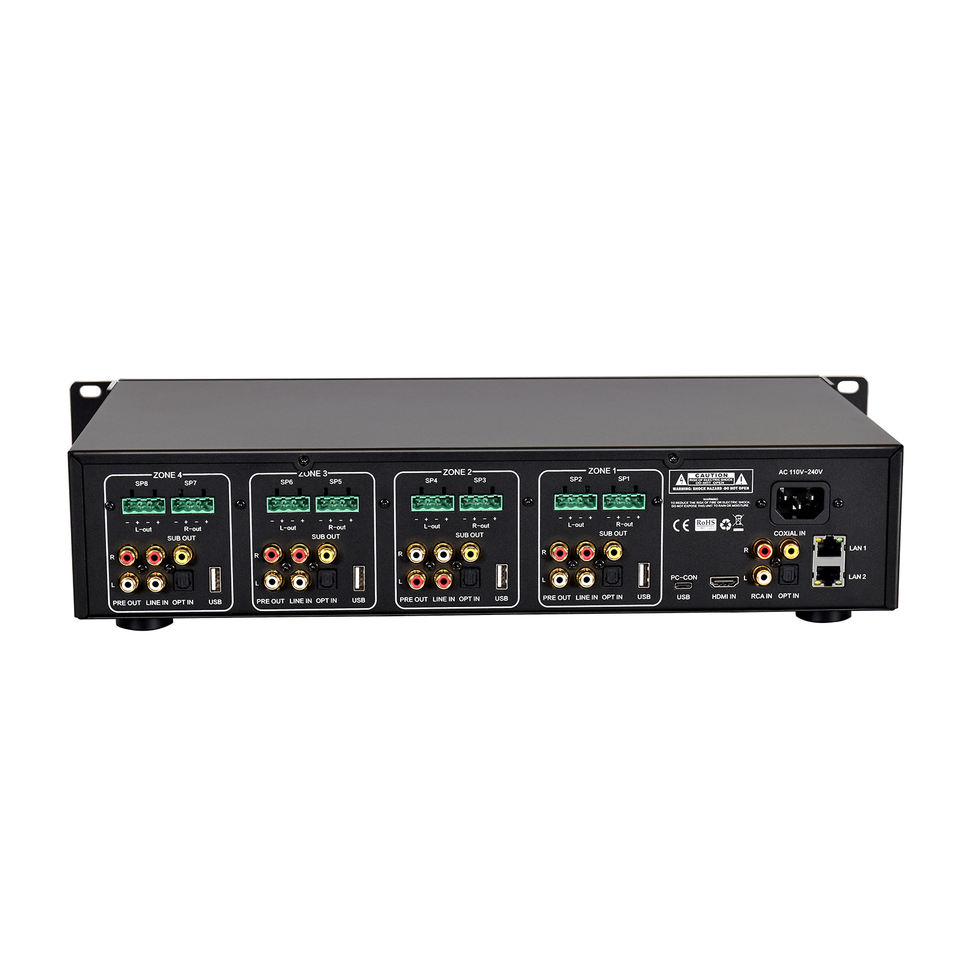 Amplificador de Audio en Red CL 4 de 16 Canales y 50W por Canal, Cuatro Zonas, con Transmisión Inalámbrica para Sistemas de PA Profesionales