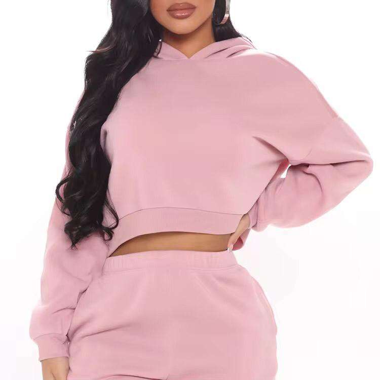 Casual suelta Color sólido mujer Crop Top Sudadera con capucha ropa deportiva Yoga entrenamiento manga larga gimnasio OEM Suelto