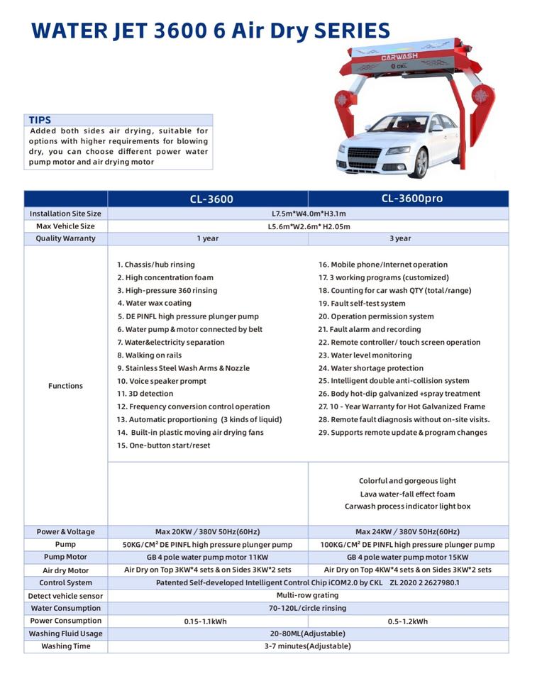 Máquina de Lavado de Autos Automática de Doble Brazo sin Contacto CL3600, Sistema de Limpieza de Vehículos de Alta Presión con Secado por Aire
