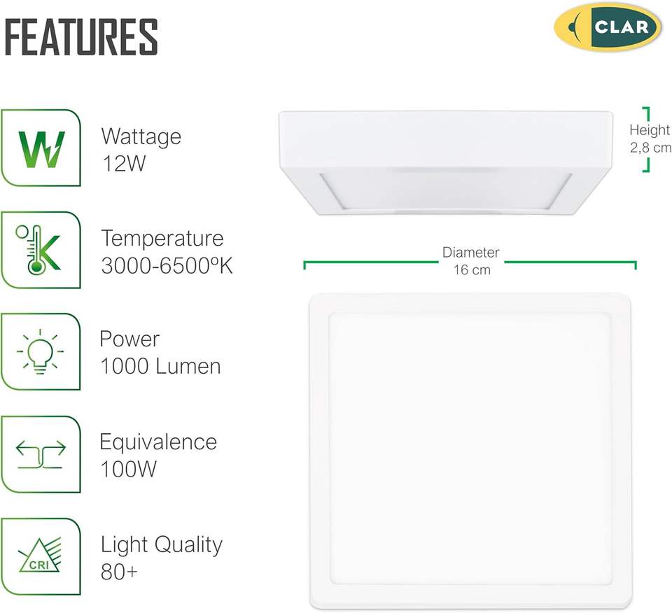 Lámpara de Techo LED de Superficie de Aluminio CLAR, 6W/12W/20W/24W, Moderna, para Cocina y Baño