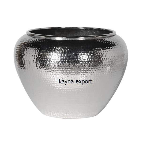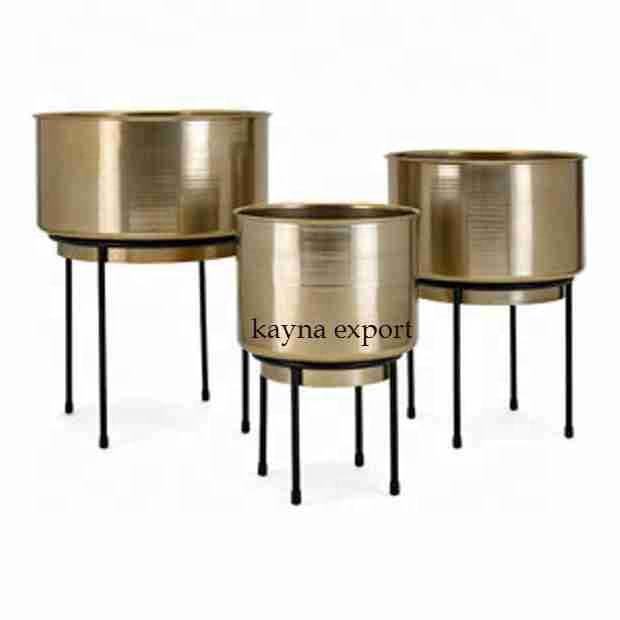 Jardinera de metal con plataforma de latón con soporte recubierto de polvo negro