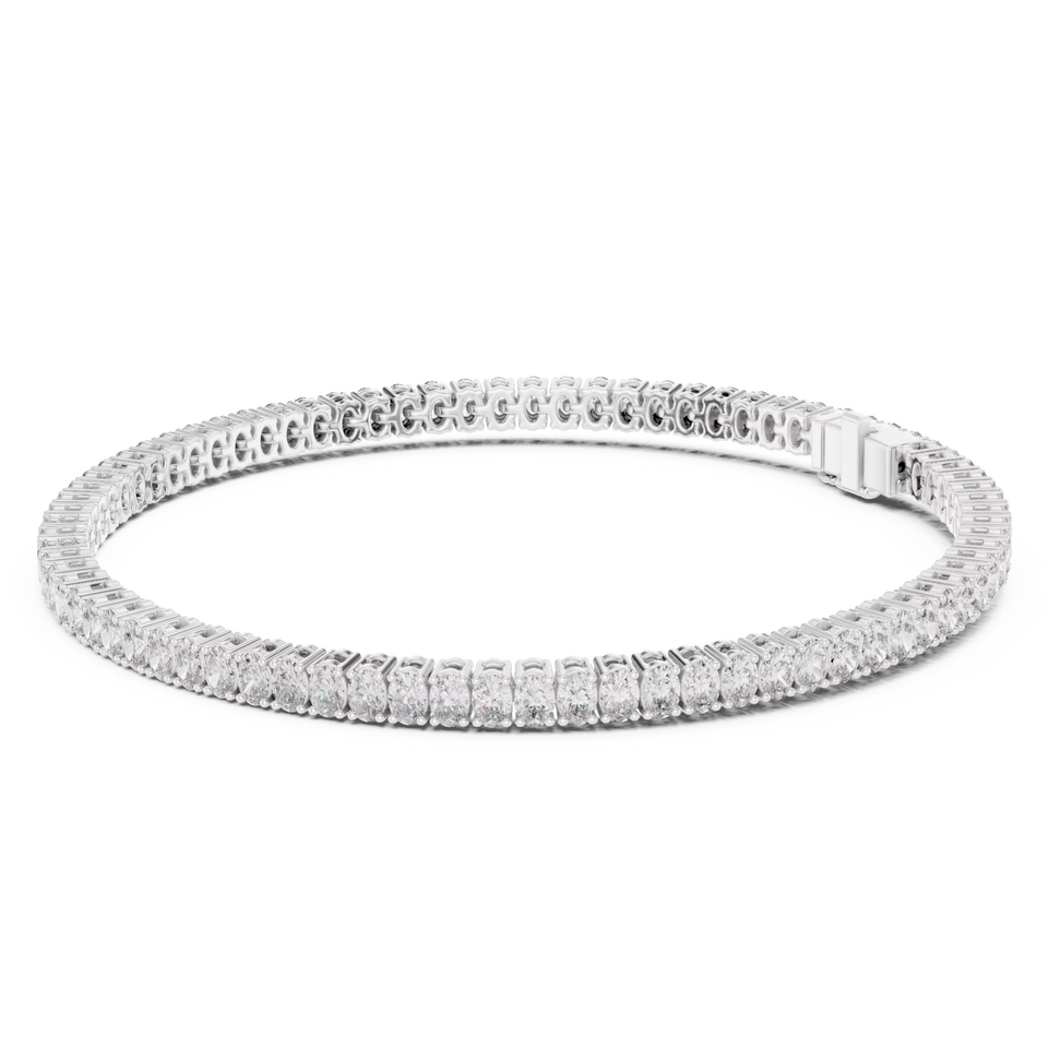 Conjunto de Pulsera de Tenis de Lujo con Diamantes Cultivados en Laboratorio de Corte Ovalado Clásico, Chapado en Rodio, Oro Blanco Sólido de 18 Quilates, 11.8 Quilates, Piedras Laterales Talladas