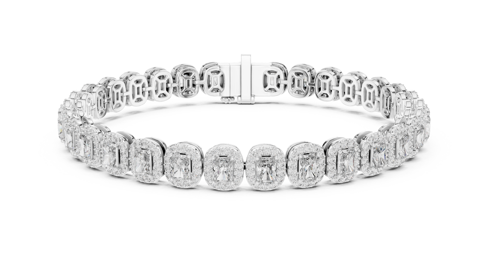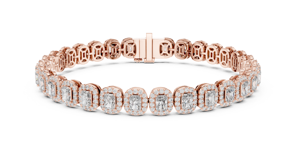 Pulsera Clásica con Diamante Radiante Cultivado en Laboratorio y Halo, Cierre Oculto, Oro Rosa Sólido de 18K, Bañado en Rodio, Ideal para Regalo y Fiestas