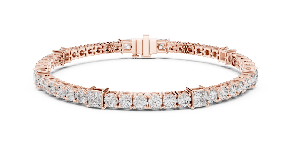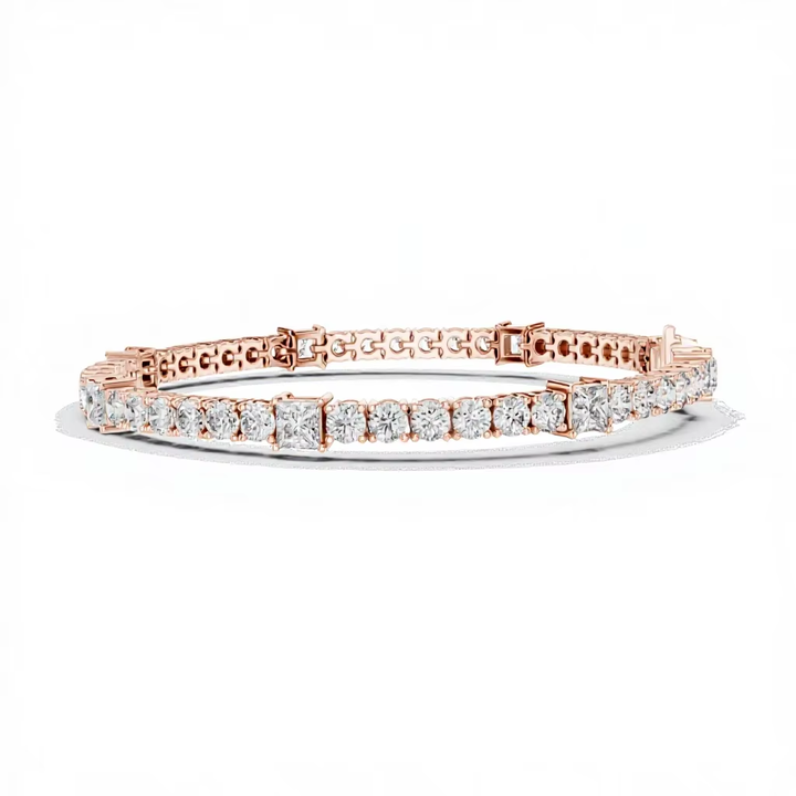 Pulsera de tenis de lujo con diamantes cultivados en laboratorio, corte redondo y princesa, chapada en rodio, oro rosa de 18 quilates, para uso diario/compromiso, para mujer