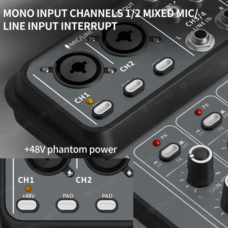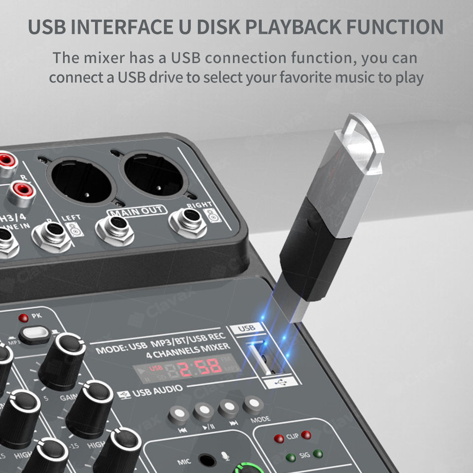 CLAVAX-Mini mezclador de audio de 4 canales, interfaz USB, Bluetooth, consola de mezcla para karaoke de música en casa, alta calidad, 1 unidad