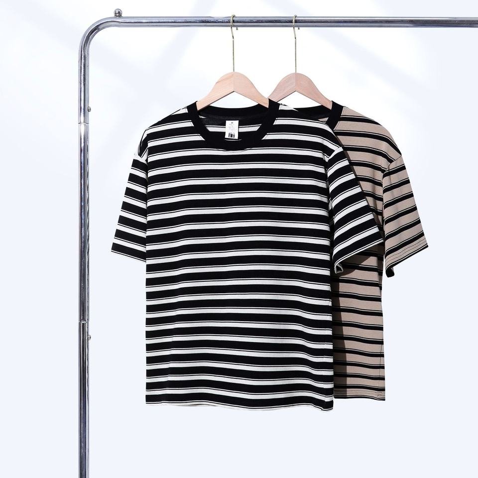 Muestra de Tela a Rayas para Gimnasio, Stock Local en China, Material Personalizado OEM, 250 g/m², Rayas Gruesas, Cuello Redondo, Suave para Hombre, Alto Estándar