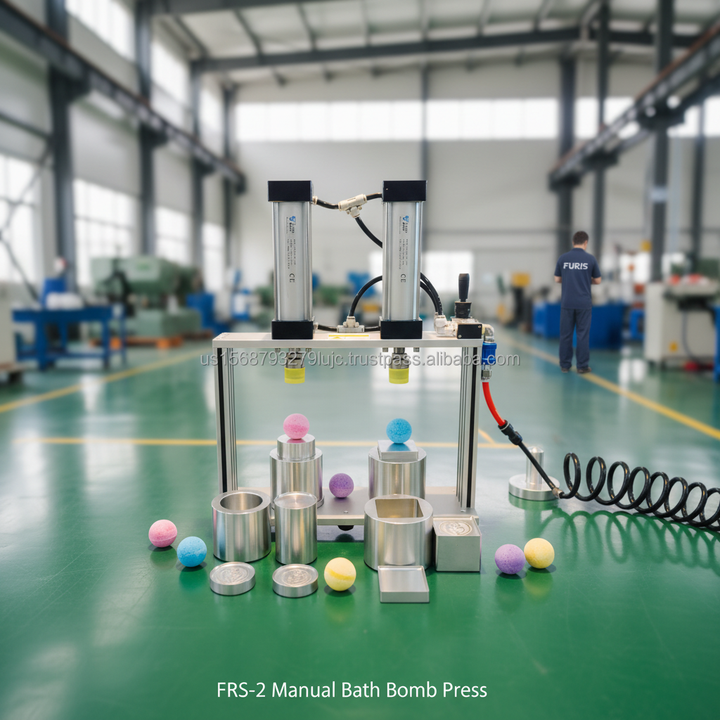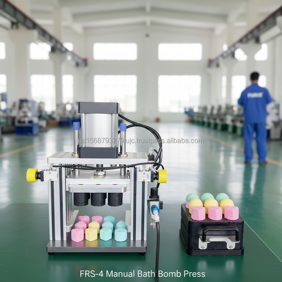 Máquina de prensado CNC para bombas de baño con sistema neumático y moldes intercambiables para la producción de barras de champú y bombas de baño