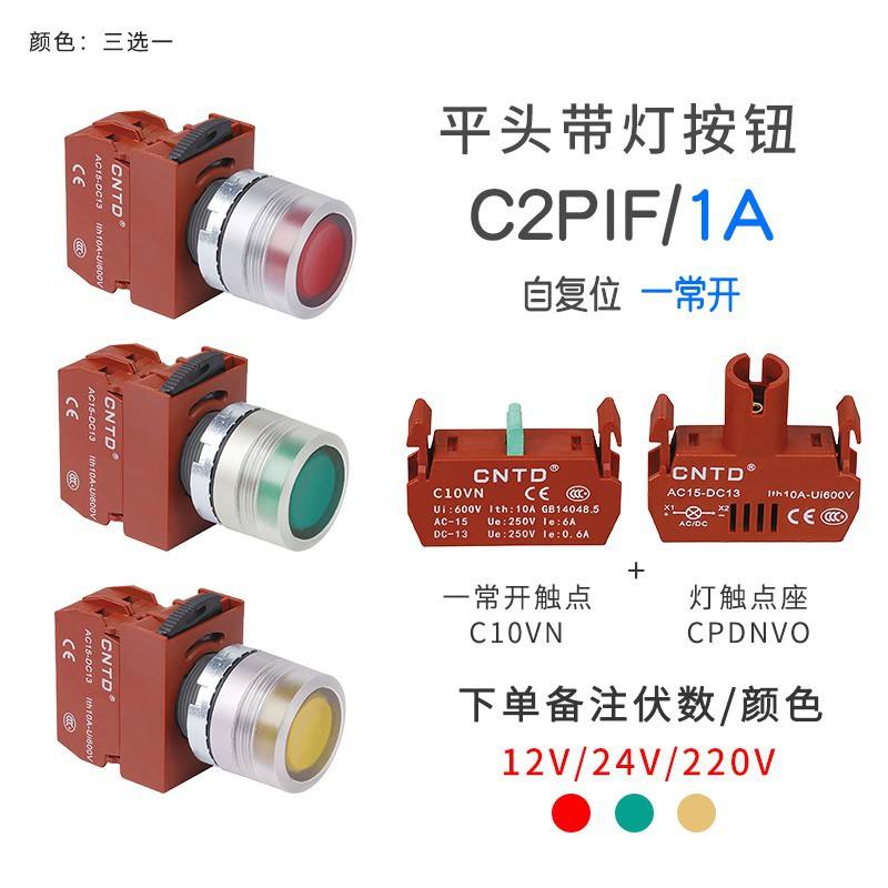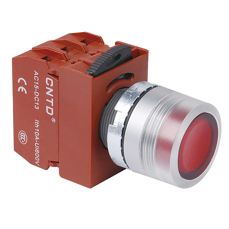 Interruptor de Botón Pulsador de Cabeza Plana Iluminado CNTD Changde C2PIF, Auto-Reiniciable, con 6A Máx. Oferta Actual 22