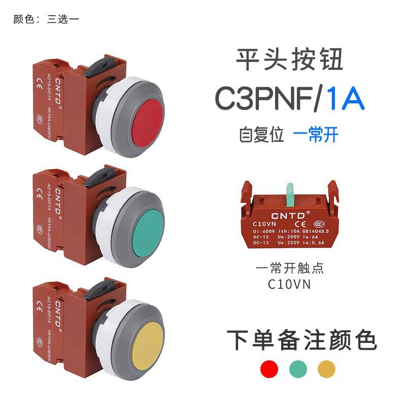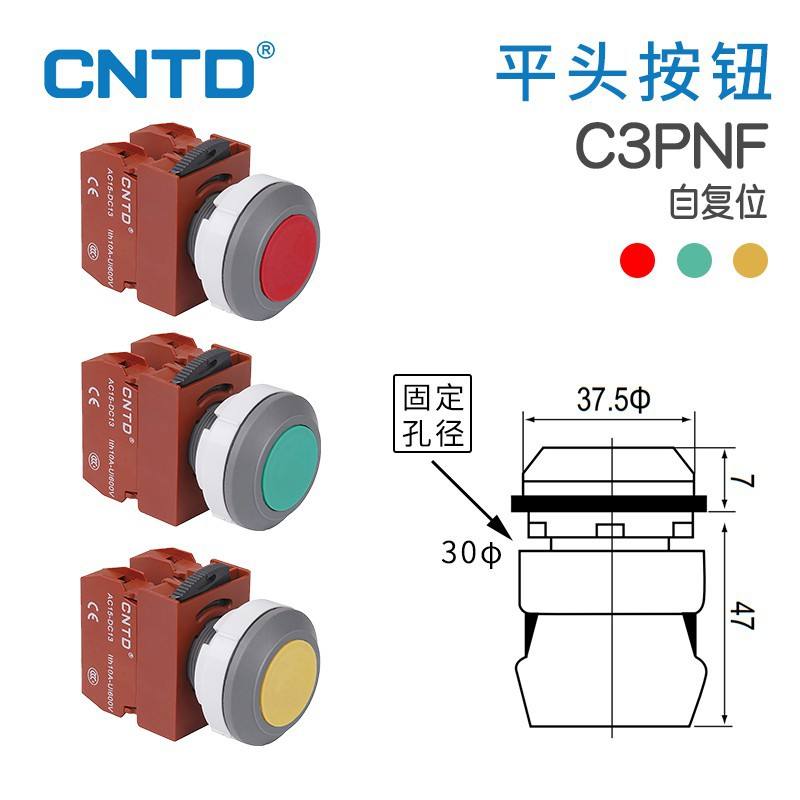 Interruptor de Botón Pulsador de Reinicio Automático CNTD Changde C3PNF, Material de Latón, Cabeza Convexa, Luz Indicadora, Impermeable, Apertura de 30, 16 mm