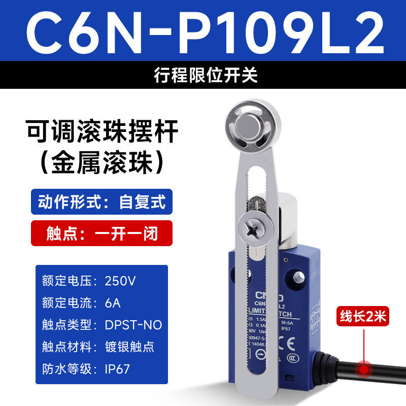 Interruptor de Límite Impermeable Autoajustable CNTD Changde C6N-P109L2 con Cable de 2 Metros de Longitud