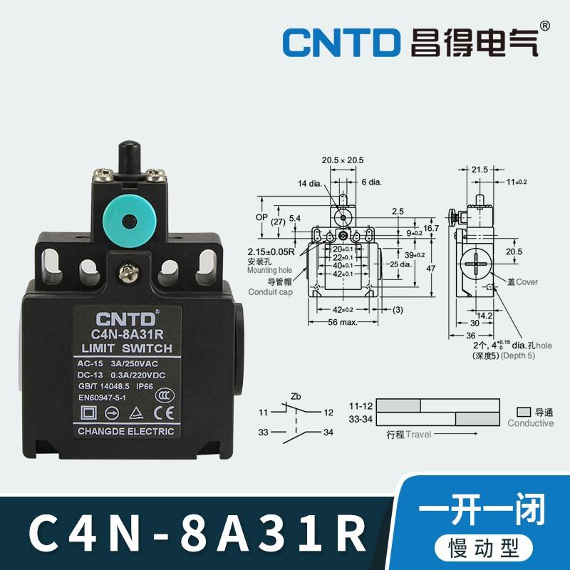 Interruptor de Límite Vertical de Seguridad Serie C4N-8-R de CNTD/Changde Electric con Máx. Corriente de 10A