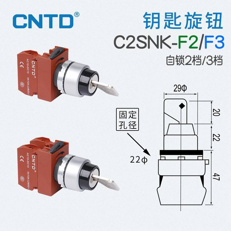 Perilla de Bloqueo Automático CNTD Changde C2SNK-F2/F3 de 2 y 3 Posiciones con Apertura de 22 para Equipos Eléctricos
