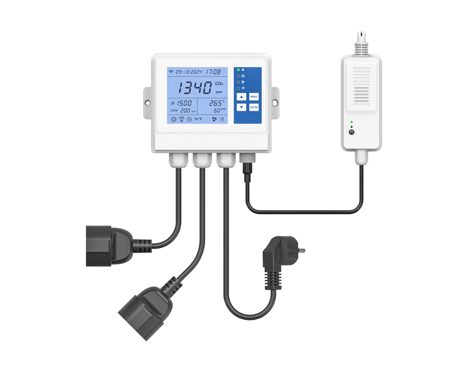 Controlador CO2 Wi-Fi Dual Outlets Fit con reguladores y ventiladores de CO2, controlador C02 de montaje en pared de dos enchufes para sala de cultivo, invernadero