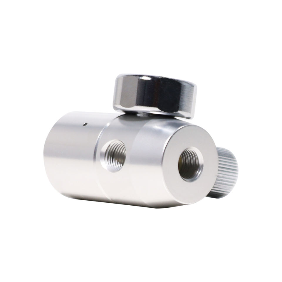 Regulador de CO2 con rosca interna 3/8-24UNF, con orificio de 1/8 NPT y válvula de encendido/apagado para cilindros de 8g, 12g y 16g.