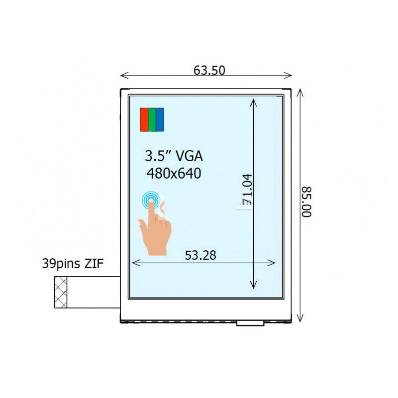 Active Area:53.28(W)x71.04(H) mm