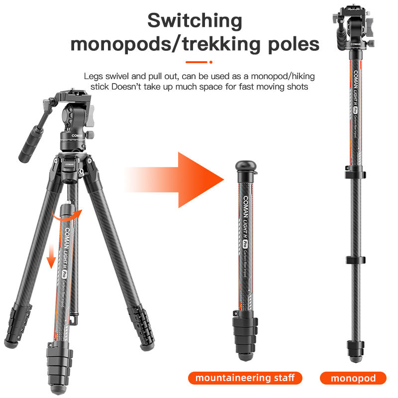 COMAN Light H Pro profesional móvil de fibra de carbono ligero de alta calidad trípode portátil para cámara