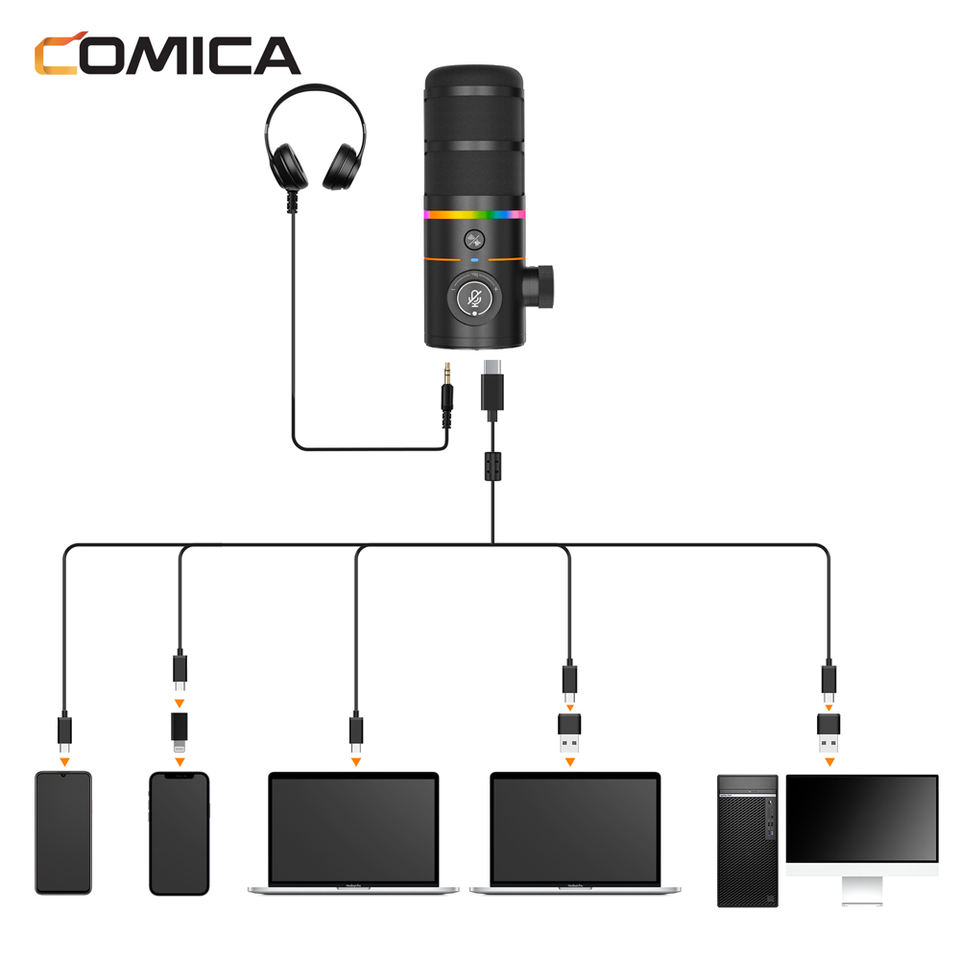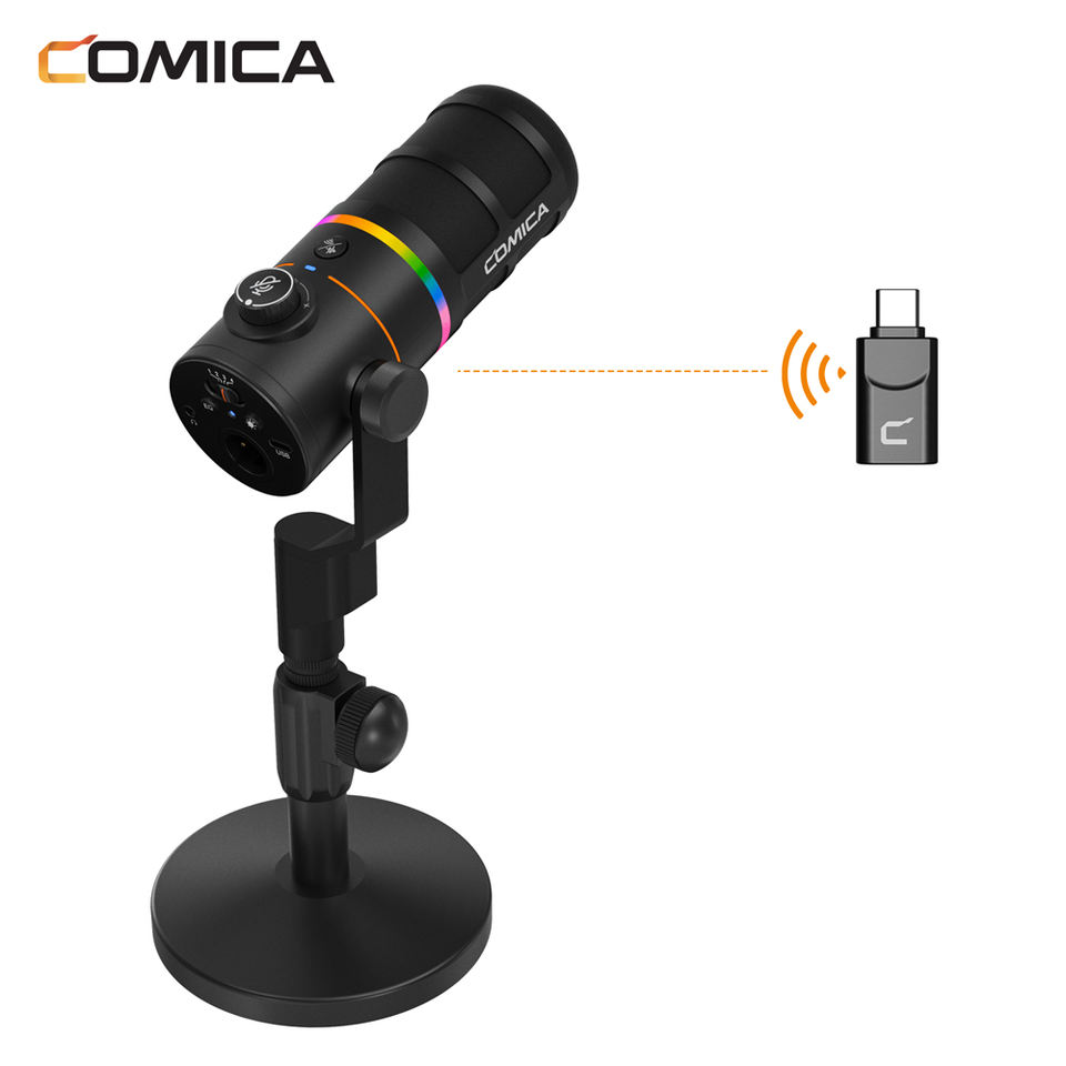 Micrófono Dinámico Cardioide RGB COMICA EJoy D10 Pro para Streaming, Grabación, Podcast, Twitch, YouTube, Juegos