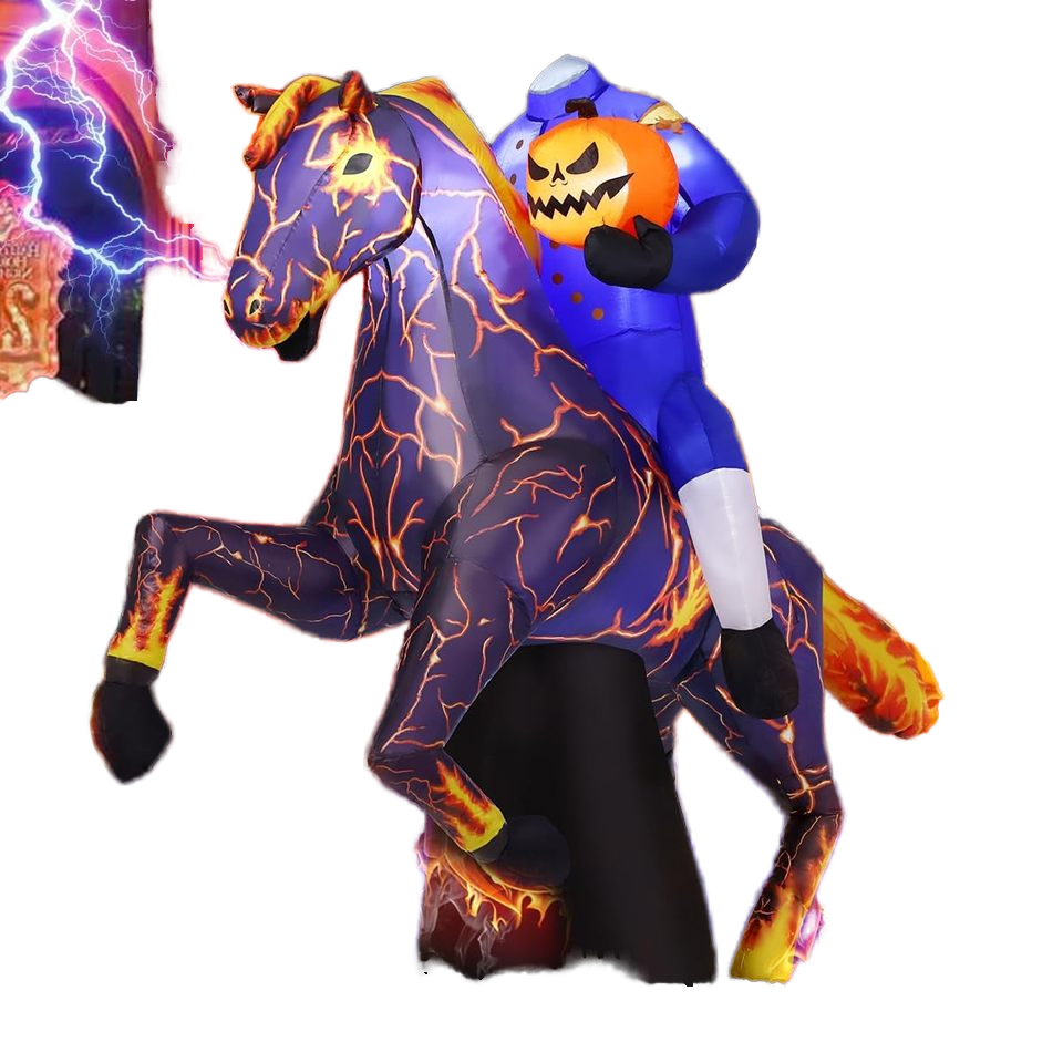 COMIN 6FT Halloween Headless Horseman Inflable Indoor-Outdoor Party & Garden Lawn Decor con LED incorporados y efectos de relámpagos